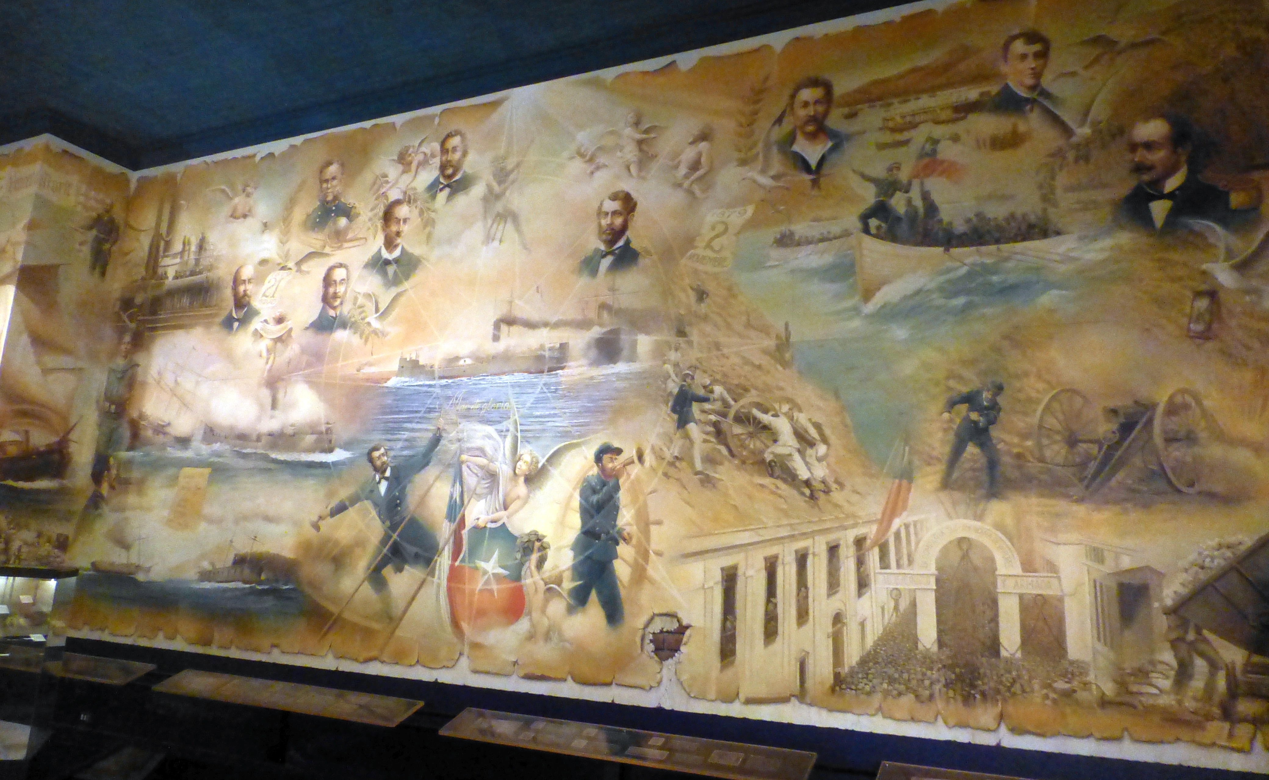 Valparaiso is the headquarters of the Chilean Navy. We had an AirBnb on the east side of the harbour, so I was able to watch the ships come and go. There is always at least one vessel on patrol just outside the harbour ready to intercept anything that would attempt to leave without authorization. While I had some good views from the hillside, the best was when we took a harbour cruise that went by the vessels all lined up by the pier. Many of the vessels here are named after Chilean Naval heroes of the War of the Pacific, which was fought between Chile and Peru in 1878-1883. That war is one of the topics covered in my book.